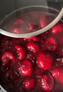מרק – 4 סלקים חתוכים סלייסים או קוביות + 2 סלקים מגורדים כולל המים שלהם!