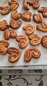 על נייר אפייה לפזר סוכר וקנמון, לחתוך מלבן מהבצק ולהניח על נייר האפייה. לפזר מעל סוכר וקנמון(הכמות תלויה במתיקות שרוצים).