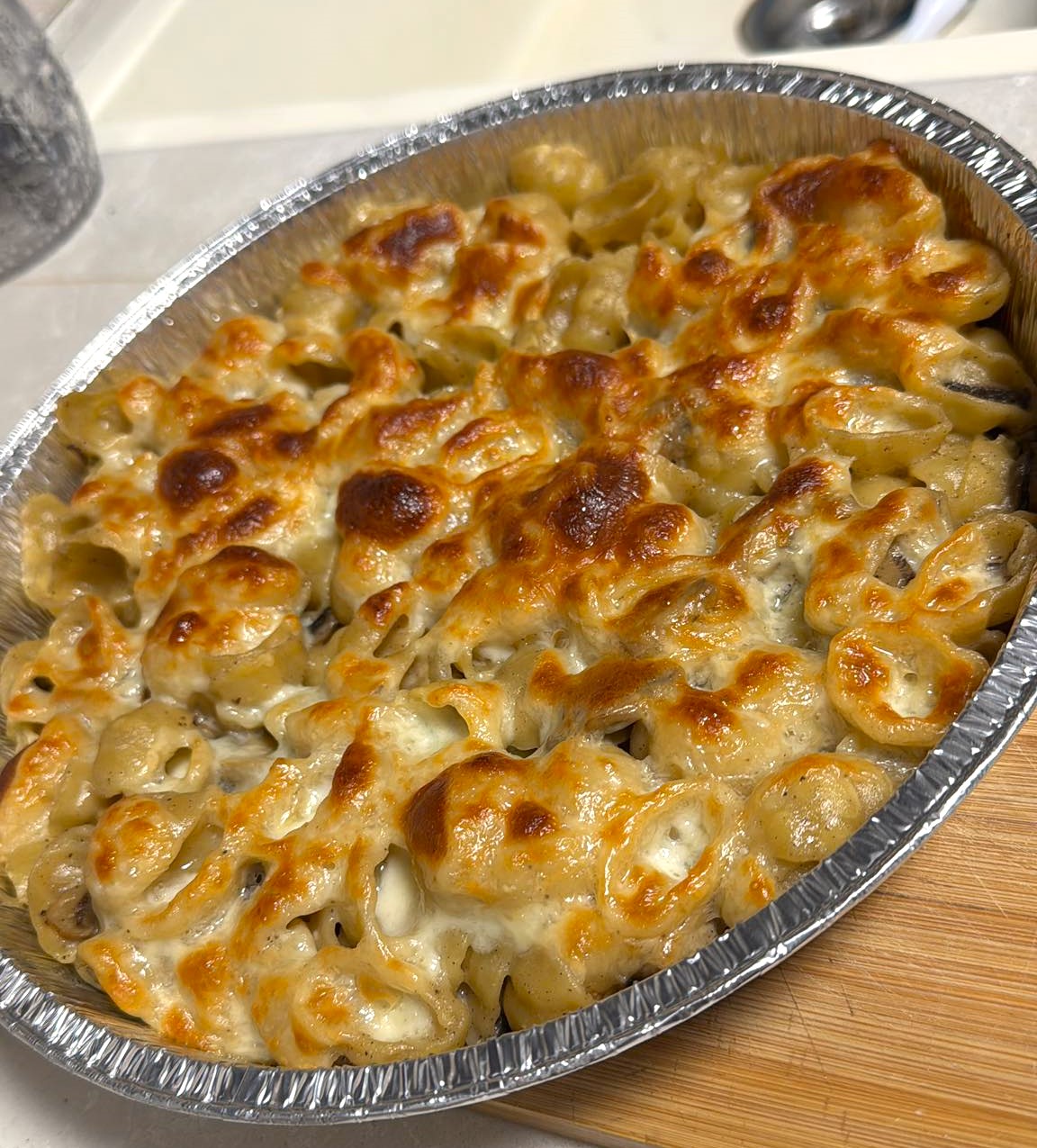 פשטידת פסטה מוקרמת – חלום מתכון מאת קורל המצרכים – חבילת פסטה בצל גדול קצוץ סלסלת פטריות מלח פלפל שחור כף מרק פטריות