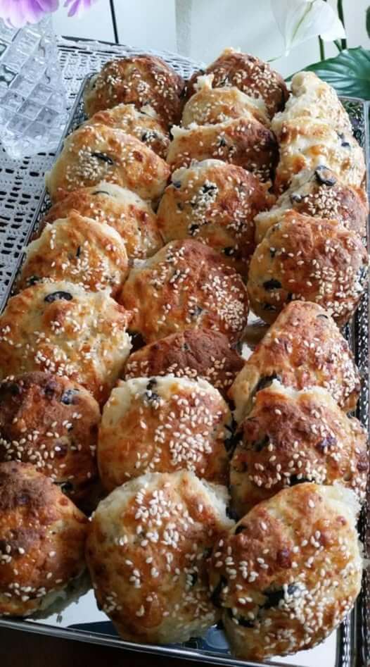 לחמניות גבינה וזיתים. – מתכון של אילנה לוי המצרכים- 3 כוסות קמח תופח 3 ביצים 250 גר' גבינת קוטג' 250 גר' גבינת חמד 250