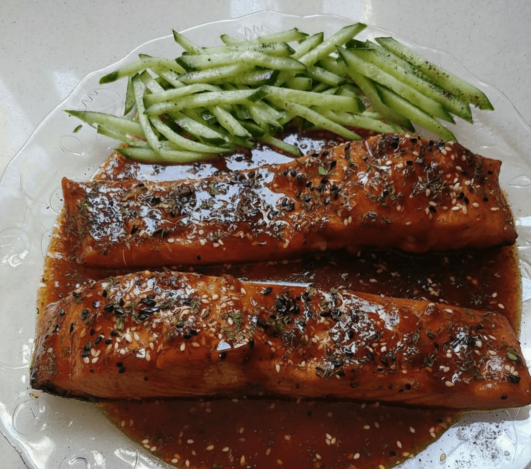המתכון לסלמון ברוטב אסייתי מהמם מאת שירי המצרכים- כ – 6 יח' פילה סלמון טרי 1 כפית שטוחה מלח 2 כפיות פפריקה 4 כפות צ'ילי
