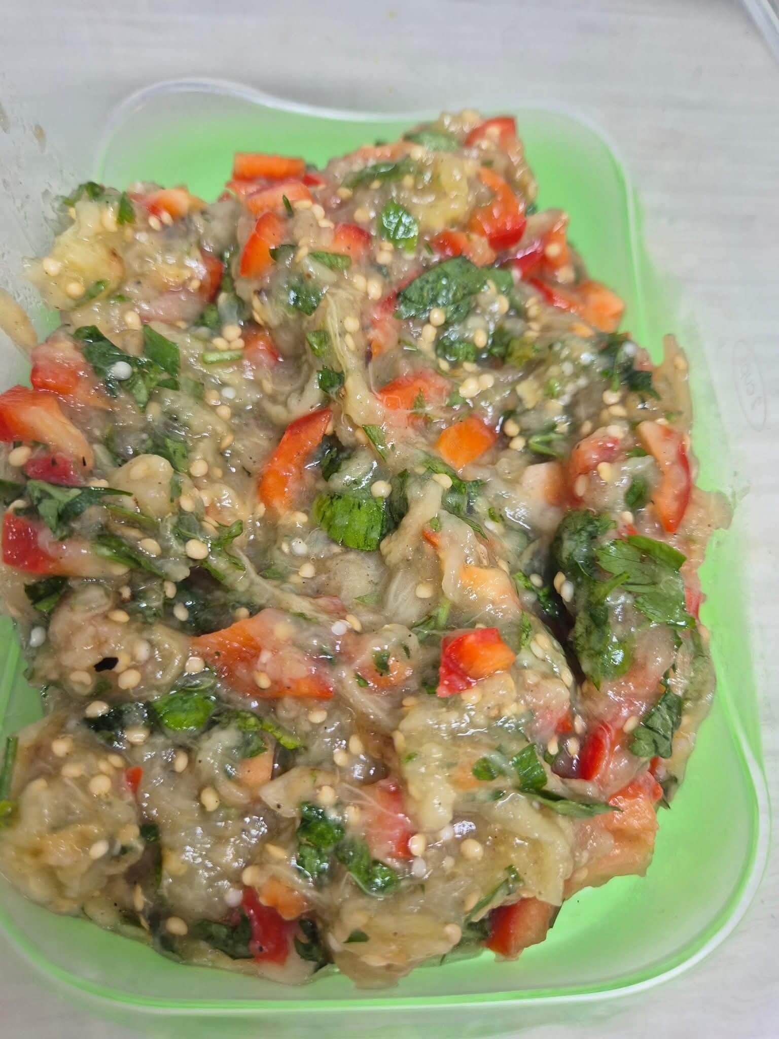 סלט חצילים קלוי בטעם אש: המתכון המושלם למרקם מעושן וממכר! מאת תקוה ססי המצרכים – 2 חצילים חופן גדול של עלי פטרוזיליה קצוצה גמבה אדומה